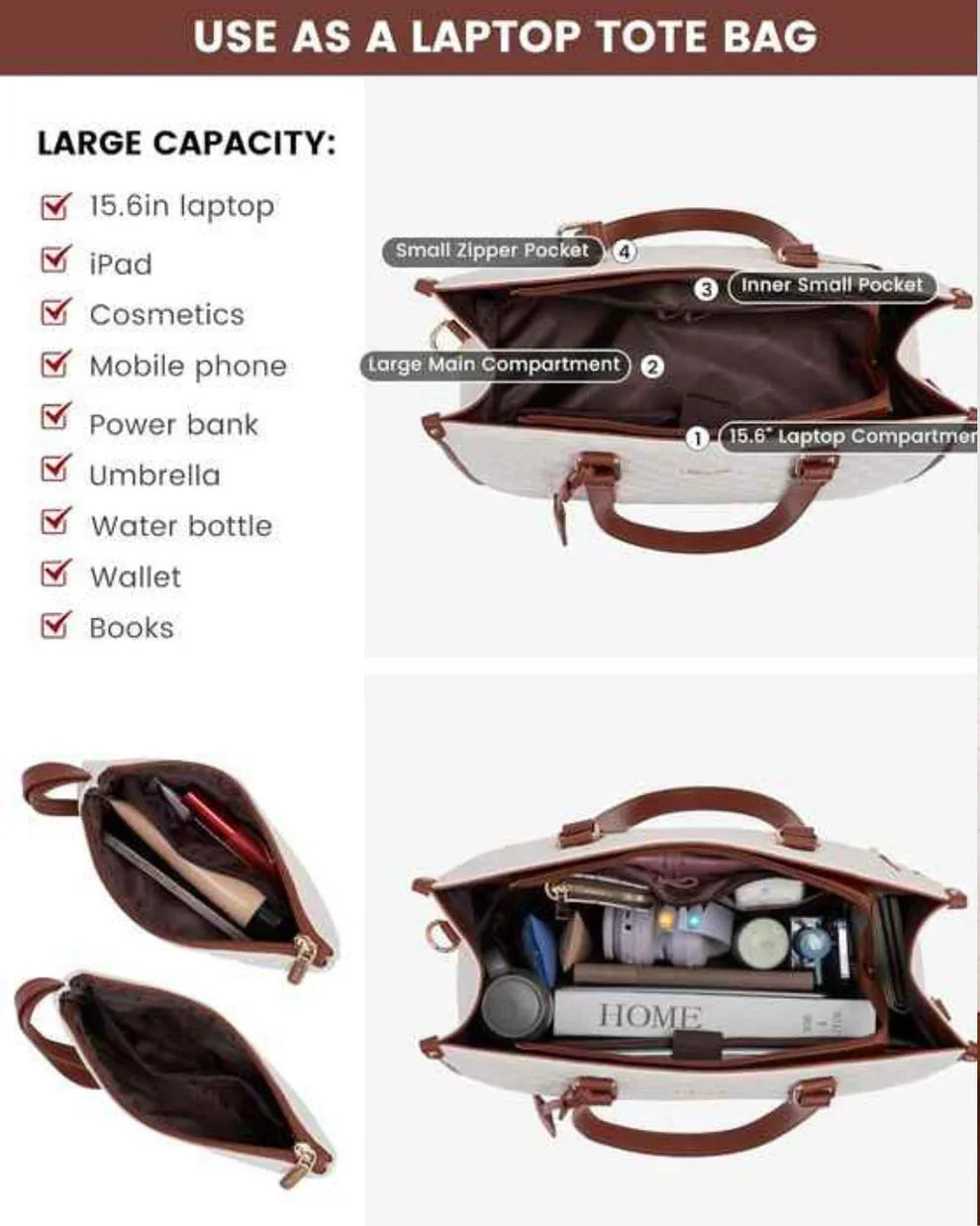 for efficiency and style, this 3-in-1 tote features a 15.6" laptop compartment, an insulated lunch section, and a spacious handbag—all in one. Perfect for work, travel, or daily use, it keeps you organised without compromise.